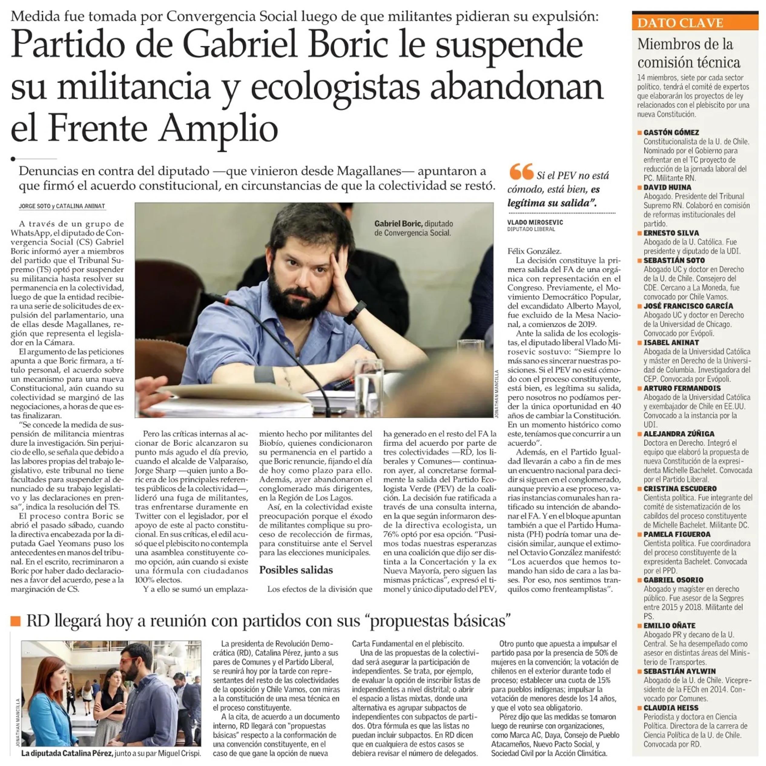 Partido De Boric - Jun 05, 2021 · luego de esto, quedó en la disyuntiva el apoyo del candidato presidencial del frente amplio (fa), gabriel boric, a oliva, ya que anteriormente maltés y su esposa, la diputada pamela jiles (ph), se han referido en duros términos al parlamentario de convergencia social.. 24 mientras que el 23 de marzo, revolución democrática mediante un consejo político nacional decidió brindar apoyo de forma unánime al diputado por magallanes como su. Jun 23, 2021 · boric, que llegó al estudio acompañado por la vocera de su campaña, lorena fries, y el diputado giorgio jackson, fue el primero en intervenir justificando su rol en el acuerdo del 15 de noviembre de 2019 que permitió el plebiscito constitucional, firmando el pacto sin la aprobación de su partido, convergencia social. Nuestro movimiento fue conformado el 7 de enero de 2012, por miembros del movimiento estudiantil y otros grupos protagonistas de las movilizaciones del año 2011. Tanto boric como provoste fueron las figuras políticas que mayor alza presentaron en esta encuesta de junio, donde la muestra total fue de 1.208 encuestados. Jul 13, 2021 · el partido humanista de jiles y maltés respondieron y ningunearon lo que dijo boric:
